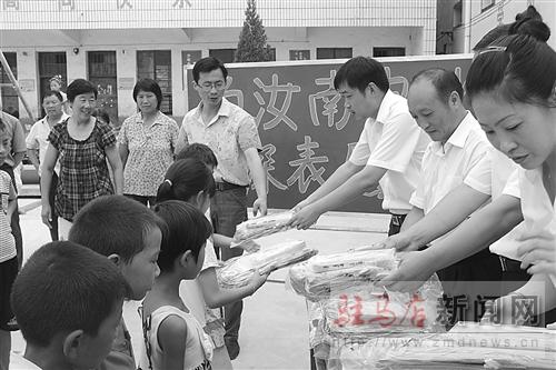 摘要: 6月29日,汝南縣電業局組織黨員干部來到確山縣王崗小學,給孩子們送來書包、圖書等,獻出一份愛心,送來一片真情。 通訊員 劉昌宇 陳 麗 攝影報道