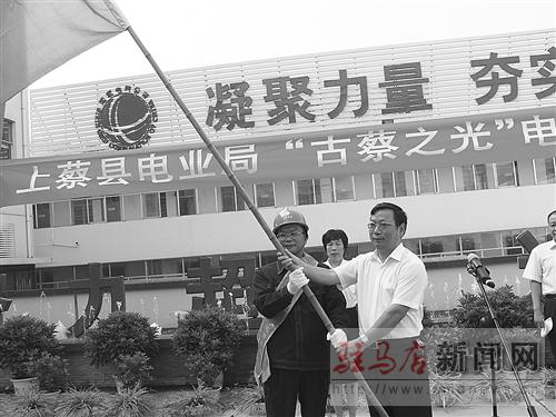 上蔡縣電業局在局機關大院隆重舉行“古蔡之光”電力服務隊授旗儀式