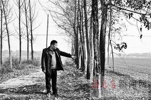 “那天晚上風很大,火苗躥了一二十米高,人在幾十米外都覺得烤得慌。”一農民指著一棵直徑十七八厘米的楊樹說:“這棵樹已經長了十來年,就這樣被大火燒死,太可惜了。”