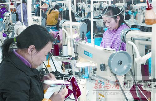 115,上蔡縣西洪鄉(xiāng)洼王村的村民王慧正在車間里忙著生產(chǎn)球鞋。自從榮光鞋業(yè)集團(tuán)投資200多萬元在洼王村建起了分廠,村里的200名多姐妹們足不出村就實(shí)現(xiàn)了就業(yè)。  記者 弓華靜