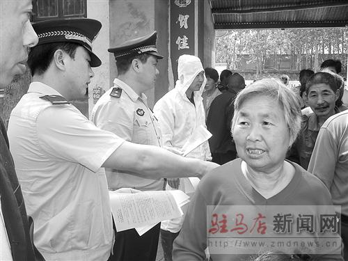為切實(shí)增強(qiáng)學(xué)生家長(zhǎng)和學(xué)生的安全意識(shí),西平縣組織公安民警、司法干警深入各村和各中小學(xué)校講解法律、安全知識(shí)。圖為譚店鄉(xiāng)組織公安民警、司法干警免費(fèi)為群眾散發(fā)安全知識(shí)明白紙。 通訊員 高懷儉 鄭富亭 攝影報(bào)道