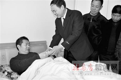 近日,西平縣五金廠有關負責人來到原單位偏癱職工張永忠的家中,將全單位260名下崗職工捐獻的2萬元錢送到了張永忠手中。張永忠的妻子說:“感謝廠領導和組織的關心,感謝工友的深情厚誼,我給大家鞠一躬。” 記者 丁 振 通訊員 焦艷艷 攝影報道