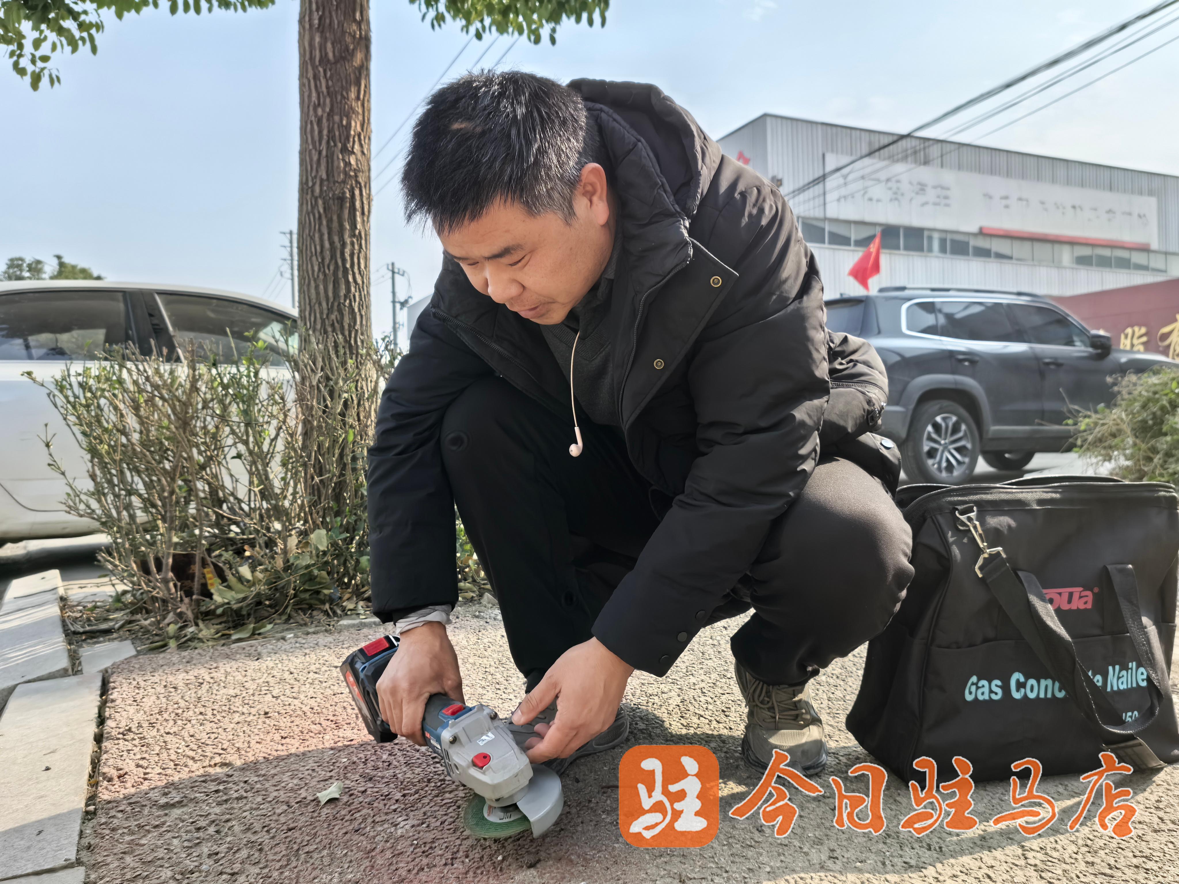 這一切或許都源于王濤的熱心腸。他隨身攜帶工具包,等候公交車的間隙、打零工的閑暇……他就會在周邊轉(zhuǎn)轉(zhuǎn),看到路面凸起的地釘,就拿出角磨機(jī)打磨平整。“這些地釘都是施工后沒有清理干凈,遺留的安全隱患,很容易絆倒人。沒事的時(shí)候我就轉(zhuǎn)著看看,收拾幾個地釘。”他一邊擦拭工具,一邊輕描淡寫地說。