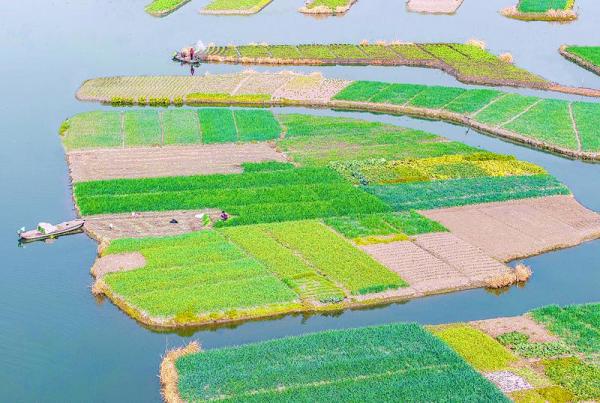 12月16日,農(nóng)民在江蘇省興化市垛田街道收獲香蔥(無(wú)人機(jī)照片)。
