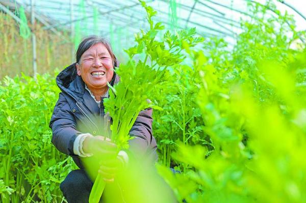 12月16日,在山東省聊城市茌平區(qū)信發(fā)街道,農(nóng)民在采收芹菜。